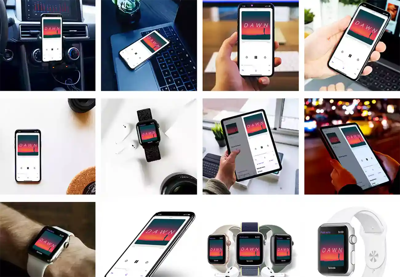 Realistic Mockups - Save time trying to catch a screengrab of your podcast or latest episode to share on social media or your latest promotion. Our mockups are realistic and professional.