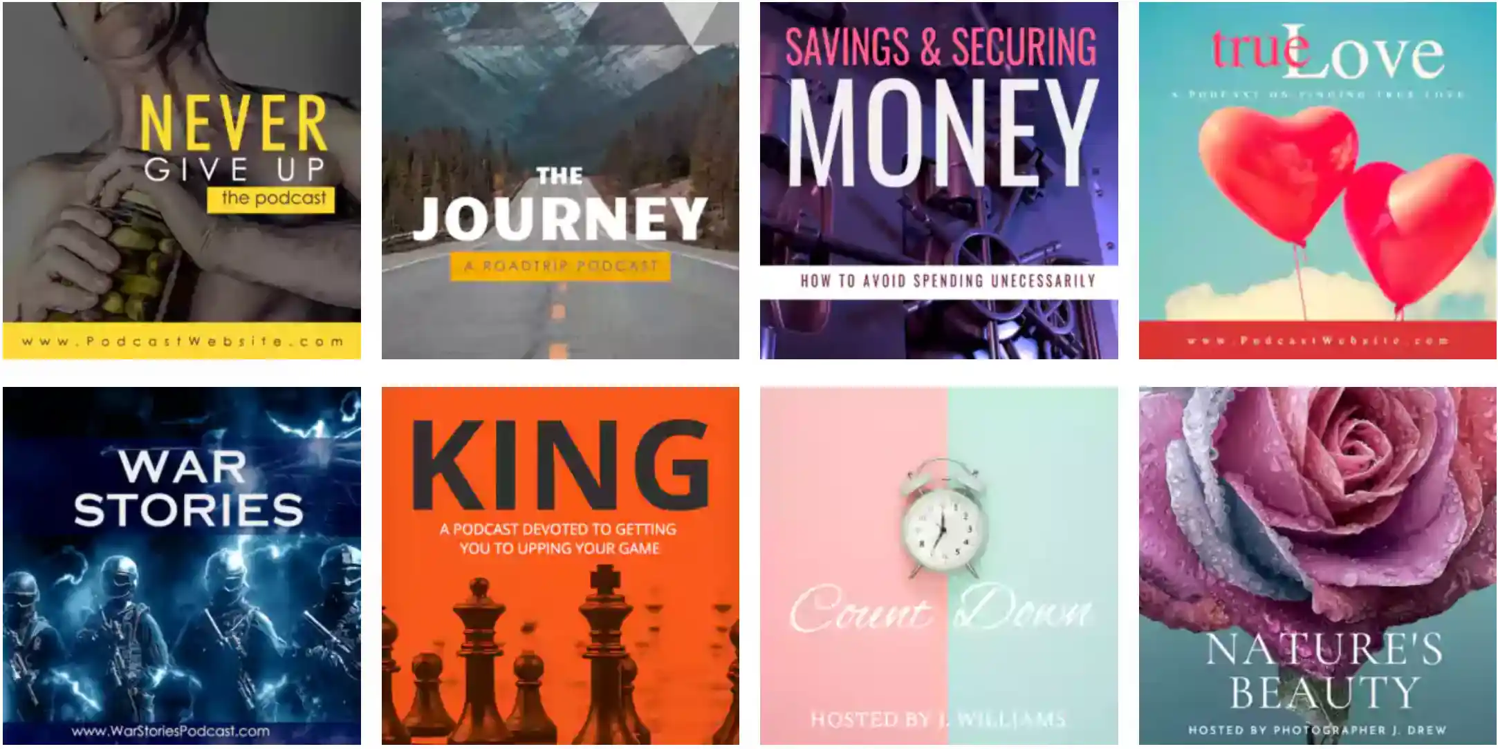 Complete the perfect podcast idea and show with professional cover art that helps you stand out in a crowded category. Your cover art and brand are what listeners associate with your podcast. Make it memorable with our Design Cover Art tool!