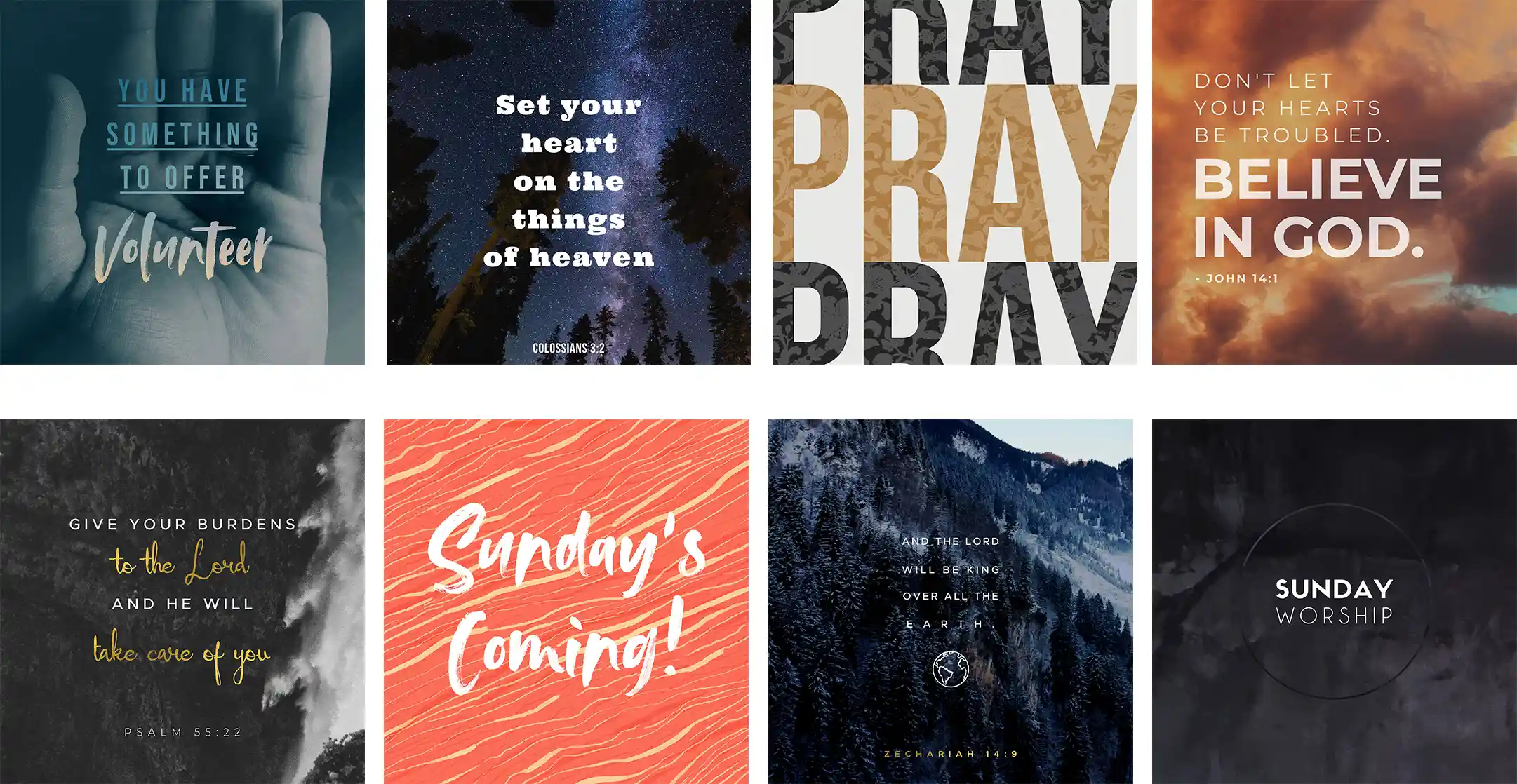 Many churches spend countless hours each week creating graphics to keep their congregation informed and engaged. With the ready-made social graphics in this pack, your team will save valuable time—while still sharing polished, purposeful content designed to spark connection and build community.